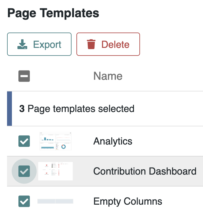 * Select multiple templates to **Export** or **Delete** in one operation