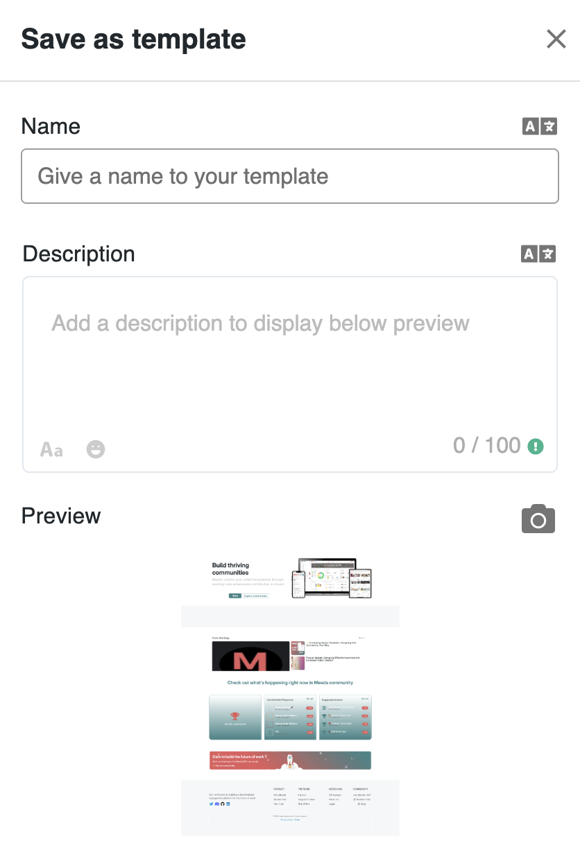 <figure><img src="https://3823946396-files.gitbook.io/~/files/v0/b/gitbook-x-prod.appspot.com/o/spaces%2F1i2FMkbhfl9LXQQfUyES%2Fuploads%2Fwt9eW8sKe64LNNDHQBsZ%2Fsave-as-page-template-drawer.png?alt=media&#x26;token=3ac5b96e-d93a-42c4-8d40-85dd7512dbdb" alt="" width="375"><figcaption><p><em>Saving a layout as a reusable page template</em></p></figcaption></figure>